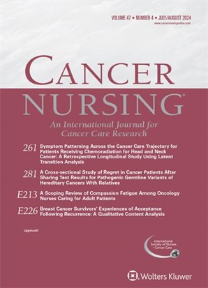Cancer Nursing is an international journal focused on cancer nursing research and care. Clinical practitioners in cancer nursing depend on the journal for its excellent research and articles which address the cutting-edge issues in the care and support of cancer patients. Each bimonthly issue of Cancer Nursing addresses a full spectrum of issues in the care and support of cancer patients--prevention and early detection, geriatric and pediatric cancer nursing, medical and surgical oncology, ambulatory care, nutritional support, psychosocial aspects of cancer, patient responses to all treatment modalities, and specific nursing interventions. The journal offers unparalleled coverage of cancer care practices worldwide, as well as groundbreaking research findings and their practical applications. For more information, visit www.cancernursingonline.com.