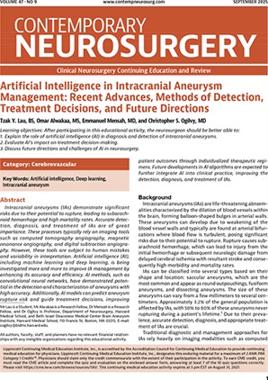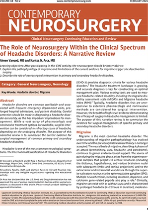A Monthly Publication for Clinical Neurosurgical Continuing Medical Education