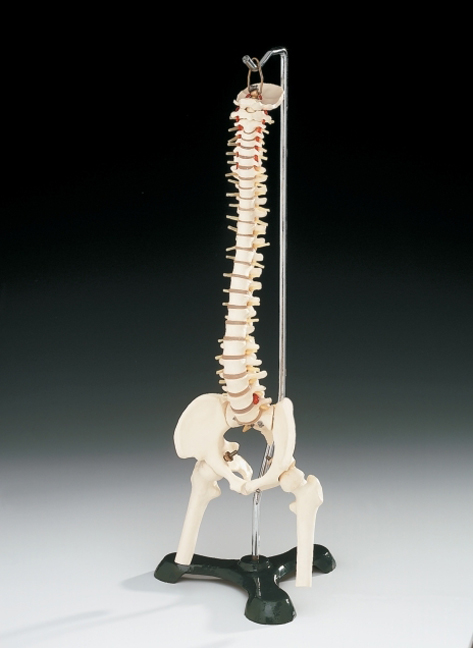 A desk top model of the spine, perfect for illustrating vertebral features and movement to patients. This model is very flexible and has articulated femur heads. Features: vertebrae and discs pelvis spinal cord with nerve branches vertebral artery movable femur heads occipital bone herniated lumbar disc Also includes a hanging stand and key card with 54 identified structures. Size: 18-/12" tall .see pages 59-61 in our "Virtual Catalog" on lww.com for a full selection of vertebral columns
