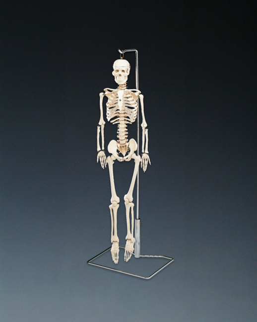 A more advanced version of our popular Mr. Thrifty® Skeleton, this popular desktop model is ideal for rehabilitation, physical therapy, and sports medicine professionals or anyone interested in the human skeleton. Features include: a flexible spine spinal cord with nerve roots vertebral artery herniated disc rib cage cartilage 3 part skull: removable calvarium and spring mounted jaw Shoulder, wrist, hip, knee and ankle joints are moveable Hands and feet are not articulated Arms and legs may be removed Includes hanging stand - may be removed from stand Includes key with names of bones size 33-1/2" tall For more information see: The Skeletal System chart ISBN 9781587790621 The Spinal Nerves Chart ISBN 9781587792052 Blueprint for Health: Your Skeleton ISBN 9781587797354 Blueprint for Health: Your Brain and Nerves ISBN 9781587797439 Illustrated Pocket Anatomy: Muscular and Skeletal Systems ISBN 9780781776783 WARNING: CHOKING HAZARD -- Small parts Not for children under 3 yrs.