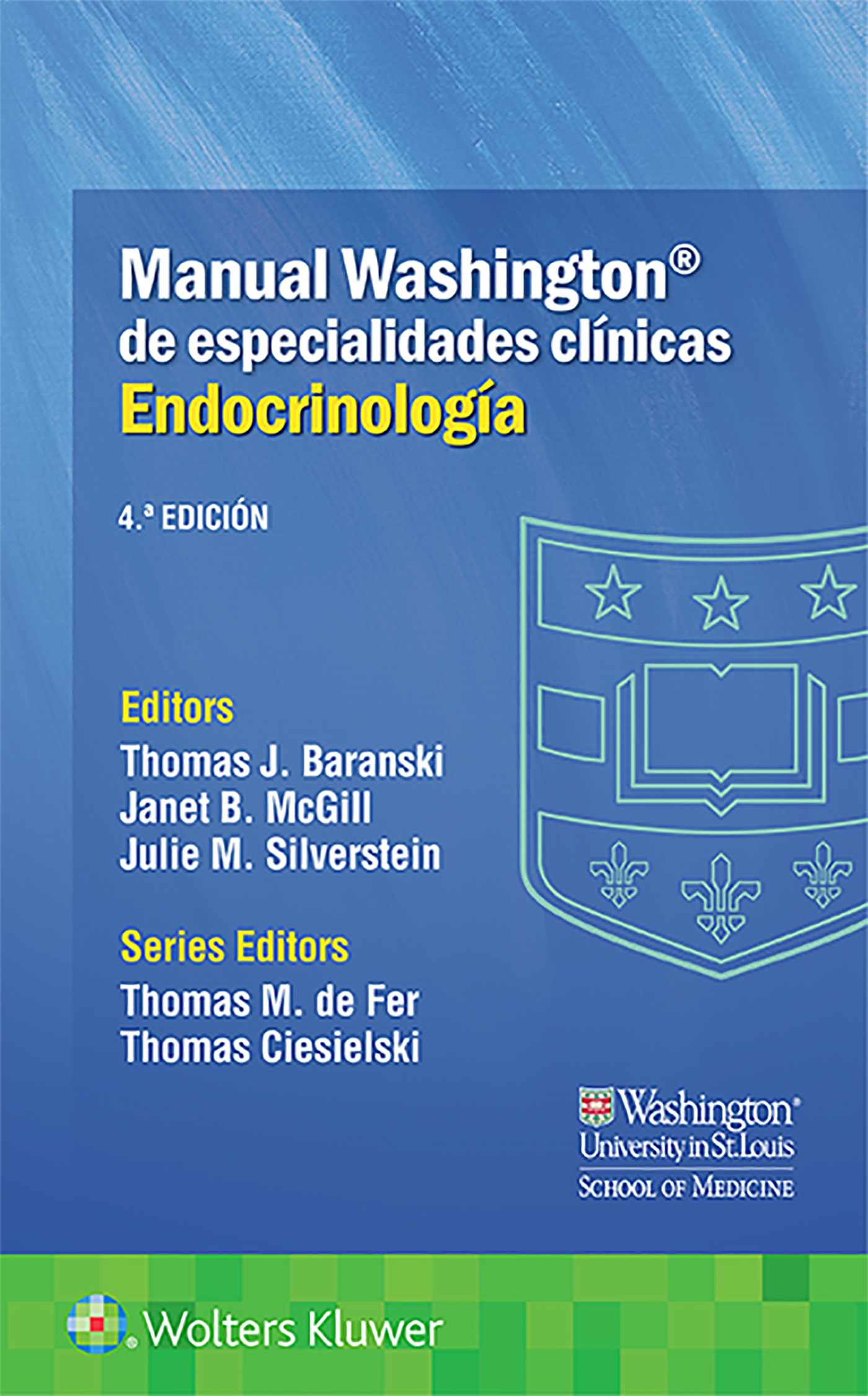 • Manual Washington® de especialidades clínicas. Endocrinología presenta a los estudiantes de medicina, médicos internos y residentes los principios para la atención de las afecciones que alteran la función endocrina, así como su manejo intrahospitalario y ambulatorio. El texto recoge los principales abordajes para evaluar y tratar al paciente, con el fin de ayudar a perfeccionar las habilidades diagnósticas del lector, darle a conocer un mayor número de opciones terapéuticas y ayudarle a mejorar los resultados del tratamiento.