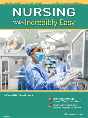 The Nursing made Incredibly Easy! journal is based on Lippincott Williams & Wilkins' popular and successful Incredibly Easy! book series for nurses. The mission of this peer-reviewed journal is to meet the ongoing educational needs of nurses through the publication of information that presents challenging clinical concepts in a refreshingly original, easily understood format that engages nurses and gives them confidence. In short: Simpler language, smarter learning. Articles are contributed by experienced clinicians, ensuring that content is evidence-based. At least two continuing-education articles are offered in each issue. For more information, visit www.nursingmadeincrediblyeasy.com
