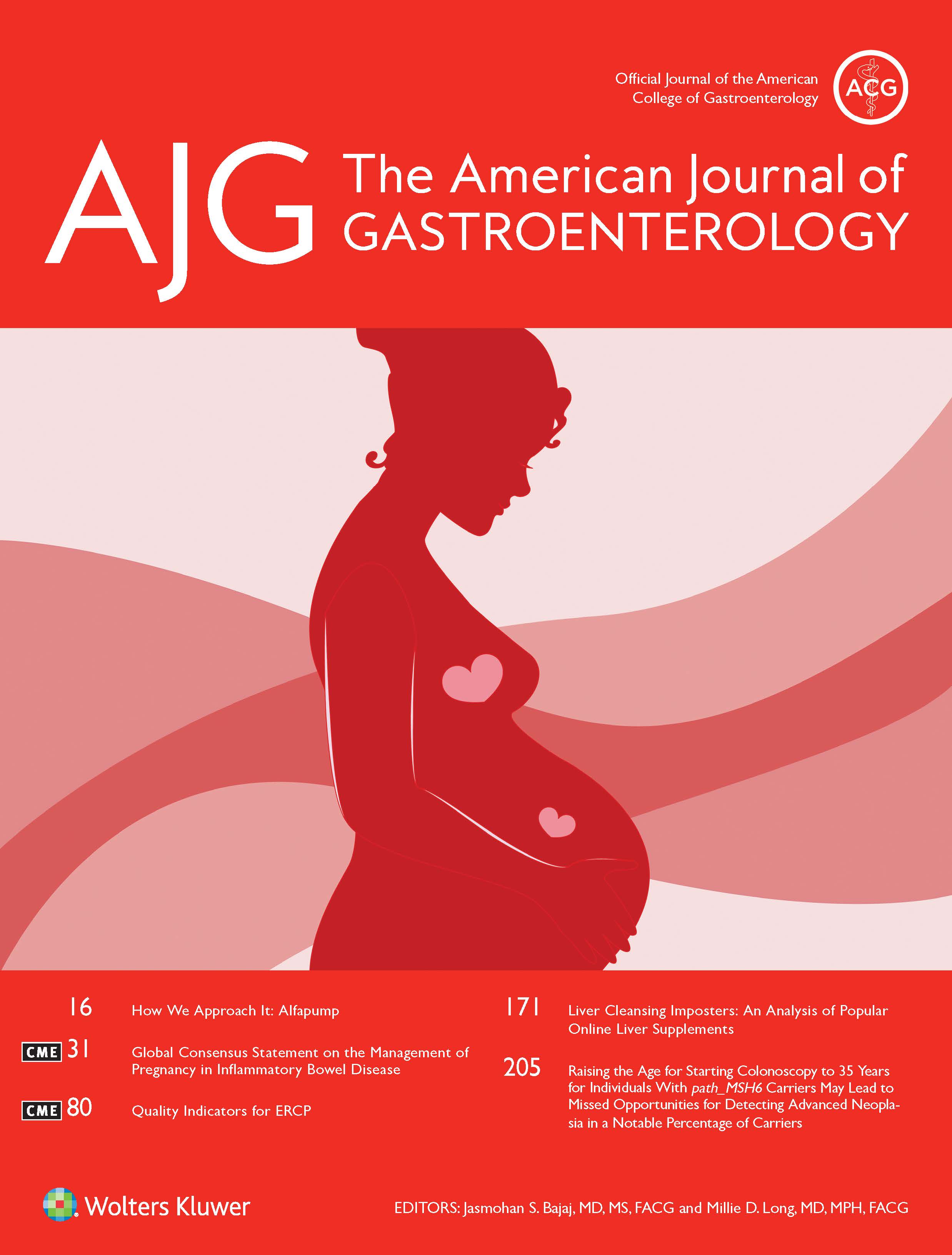 The American Journal of Gastroenterology (AJG) is published on behalf of the prestigious American College of Gastroenterology (ACG) and stands as the leading clinical journal in gastroenterology and hepatology. Designed specifically for clinicians, AJG provides practical and professional support for managing the most commonly encountered gastroenterological disorders.