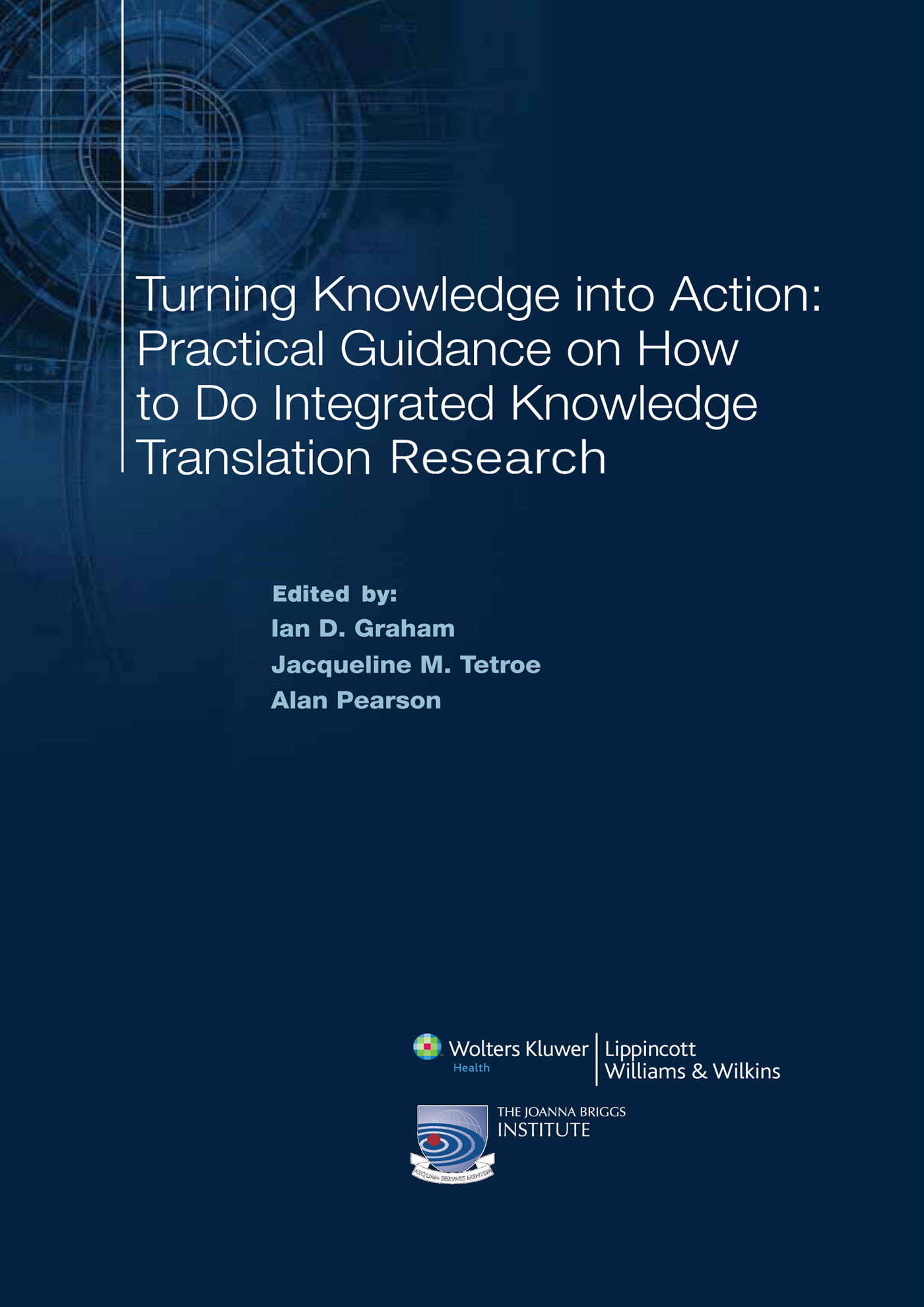 Chapter 1. Some Basics of Integrated Knowledge Translation Research Chapter 2. Guide to Integrated Knowledge Translation Research: Researcher and Knowledge-User Collaboration in Health Research Chapter 3. Deliberative Priority Setting for Research Chapter 4. Moving Into Action: We Know What Practices We Want to Change, Now What? An Implementation Guide for Healthcare Practitioners Chapter 5. Evaluation as KT