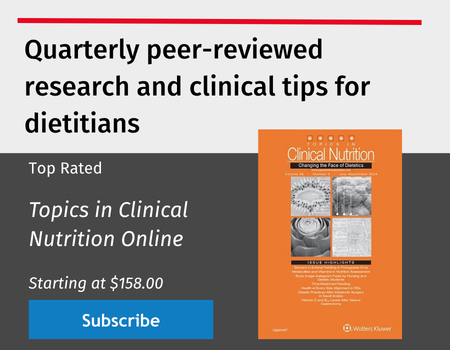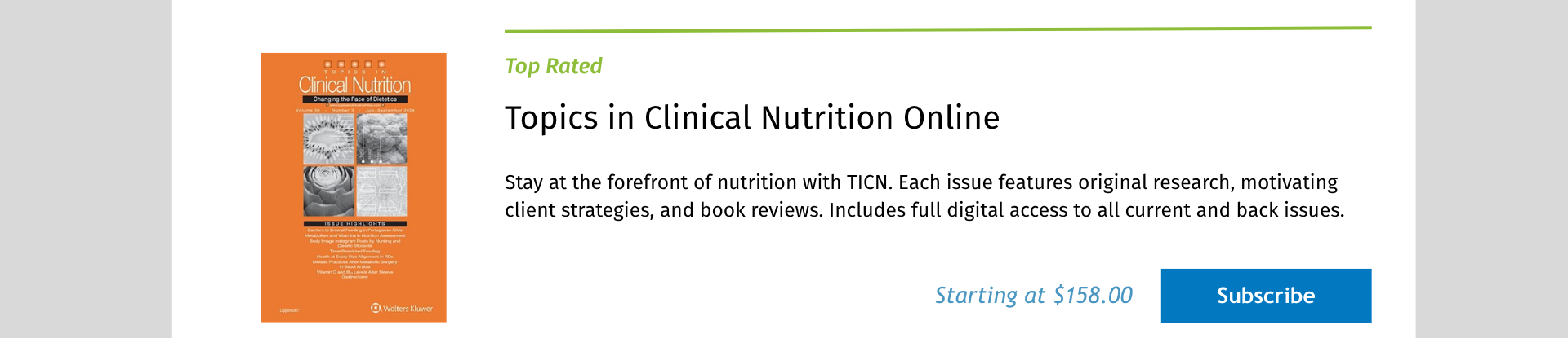 Topics in Clinical Nutrition is a peer-reviewed quarterly journal designed as a resource for the continuing education and clinical practice of dieti...