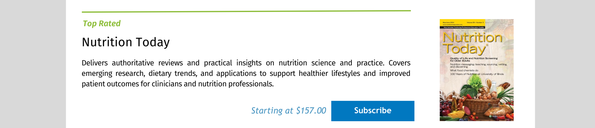 Navigating the complex landscape of nutrition has never been easier with Nutrition Today. Tailored for nutrition professionals and health enthusiasts...